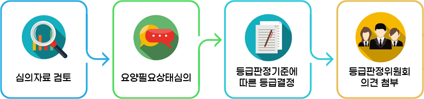 | 심의판정자료 | 요양필요상태심의 | 등급판정기준 | 등급판정위원회 의견 |